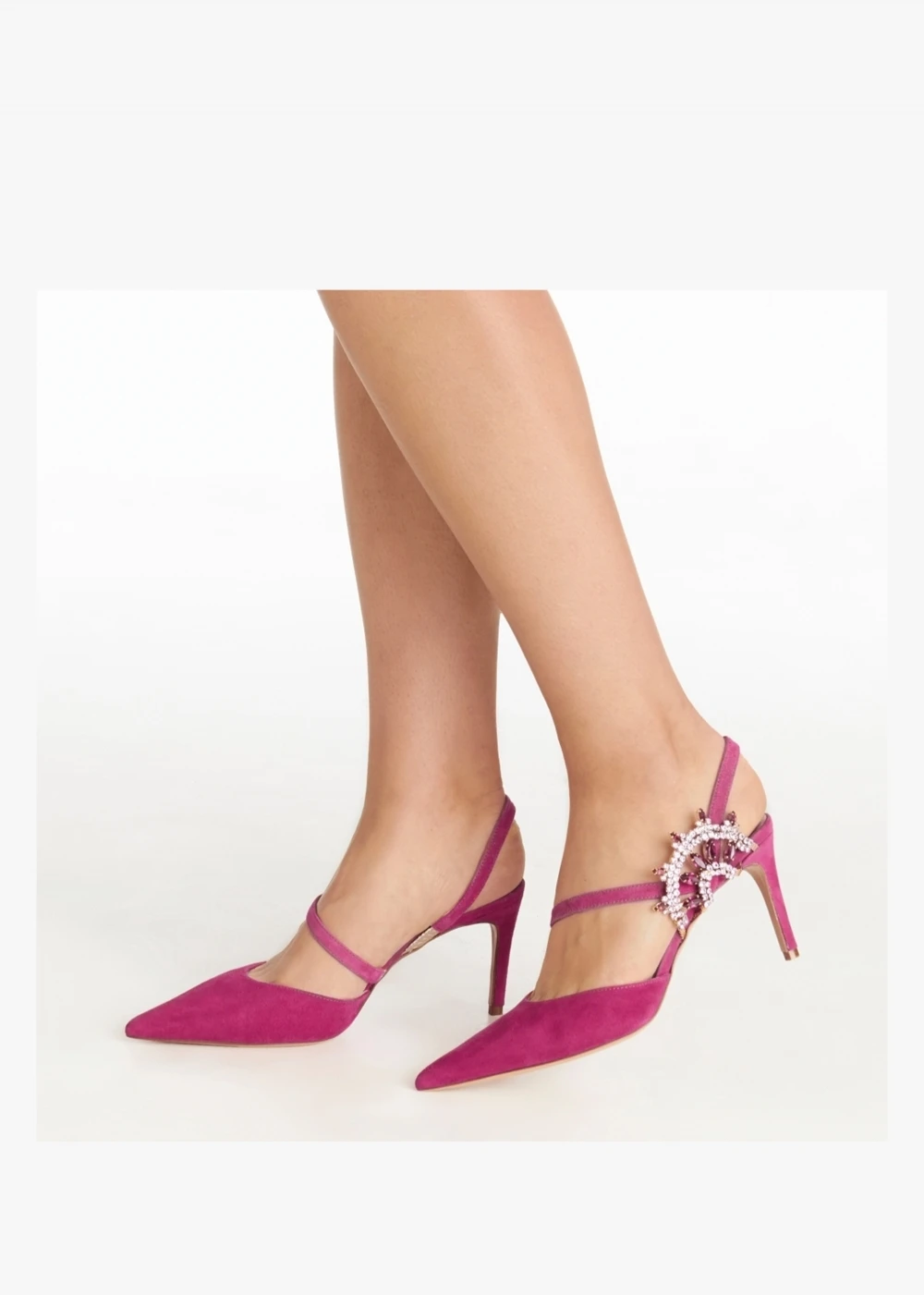 Be the first to review “Tidy Fuchsia Suede Jewelled Heel Pumps” Cancel reply