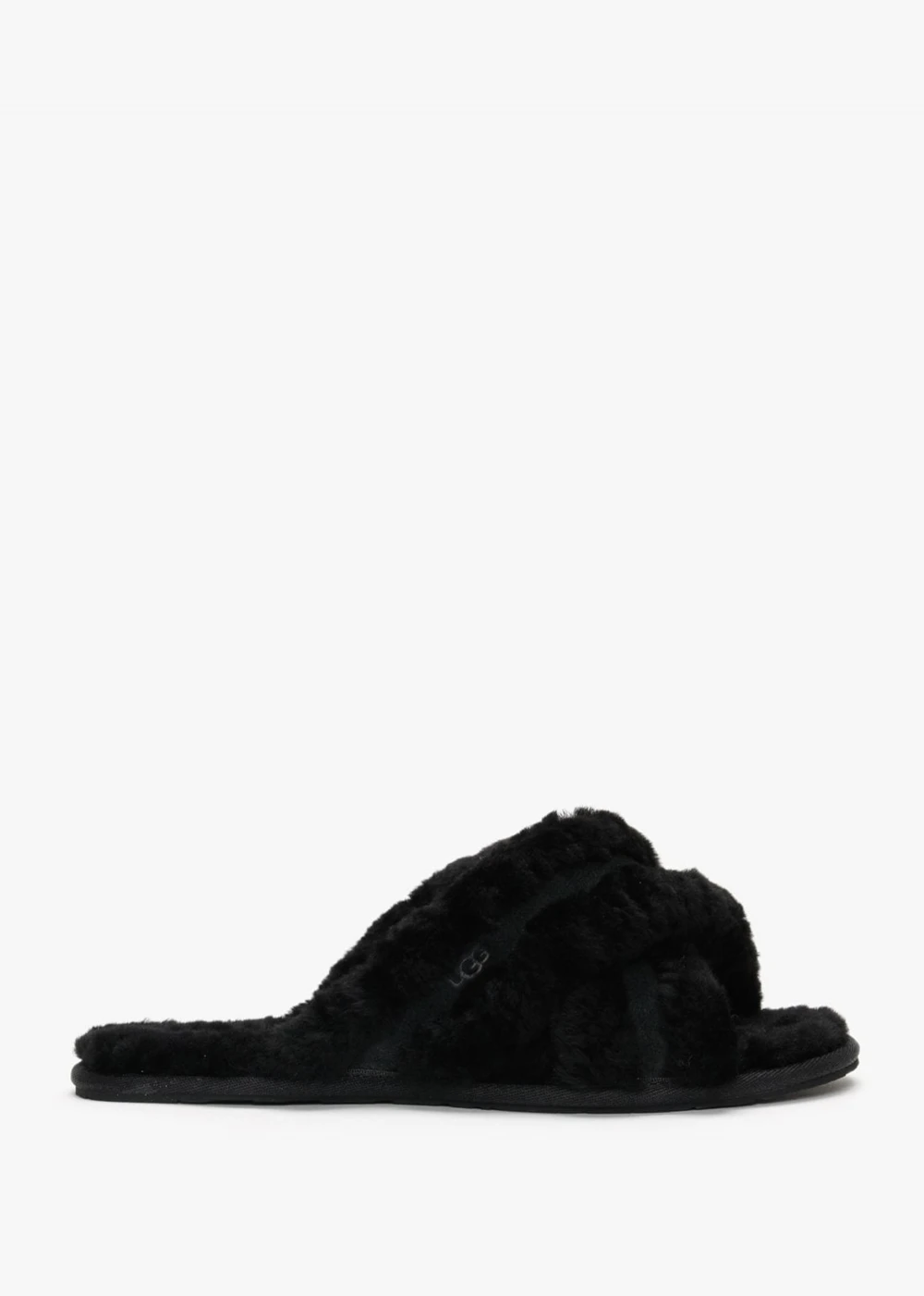 Slip into the ‘Scuffita’ slipper from UGG. This New Season style is crafted from a sheepskin upper with sheepskin lining and a comfy rubber sole. Classic nylon binding adds detail as well as suede inserts to the cross strap upper. Signature UGG branding is seen to the foot-bed and sole.