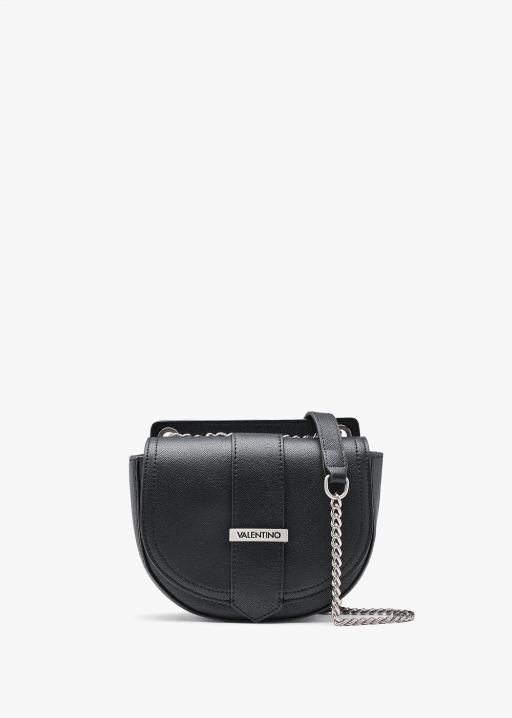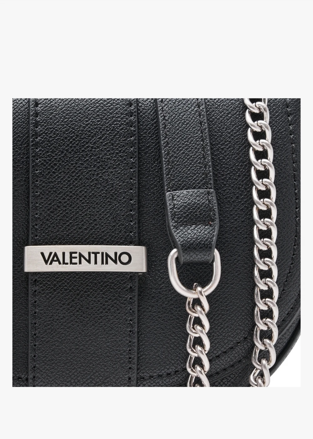 The ‘Acero’ satchel bag is part of the New Season collection from Valentino Bags. This everyday style is crafted from premium textured PU with silver tone hardware. The secure magnetic snap front flap reveals the main compartment with handy inner zip and slot pockets, exterior slot pocket also features. Carry by the adjustable chain and PU strap. Signature Valentino Bags branding is seen throughout.