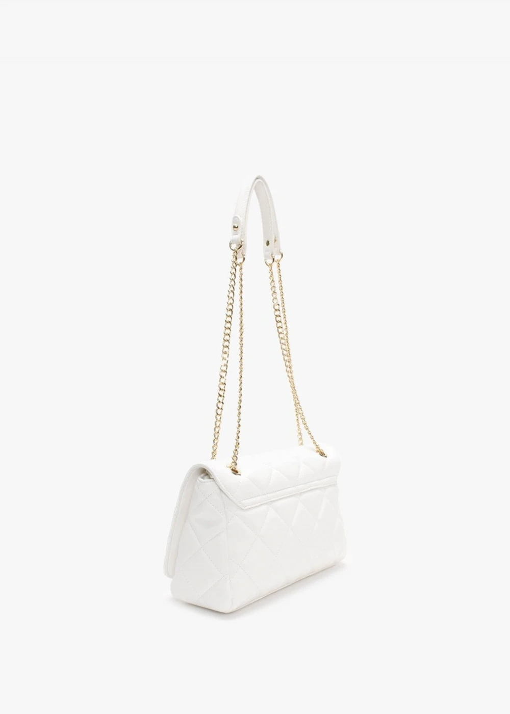 Add the ‘Ada’ satchel bag from Valentino Bags to your handbag collection. This timeless style is crafted from premium PU in a classic quilted design with gold tone accents. The secure push lock front flap reveals a zip and handy inner compartments. Carry by the adjustable strap on the shoulder or across the body. Signature Valentino Bags branding is seen throughout.