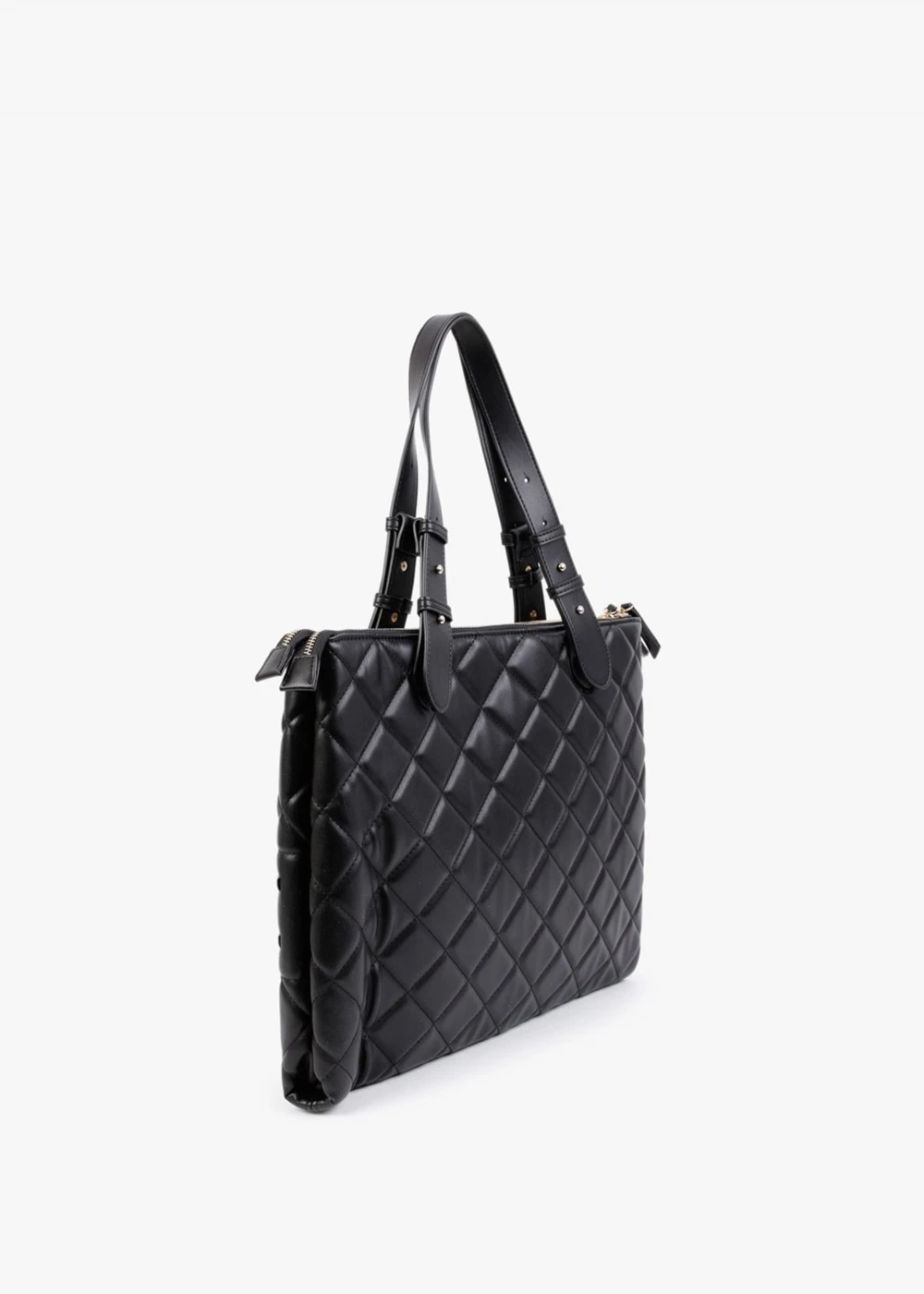 The ‘Ada’ shopper bag from Valentino Bags is the perfect day bag style. Crafted from premium PU in a classic quilted design with gold tone accents. The secure double top zip fastening reveals the main compartments featuring handy inner pockets. Carry by the top handles on the shoulder or by hand. Tonal raised logo adds detail to the front of the bag. Signature Valentino Bags branding is seen throughout.