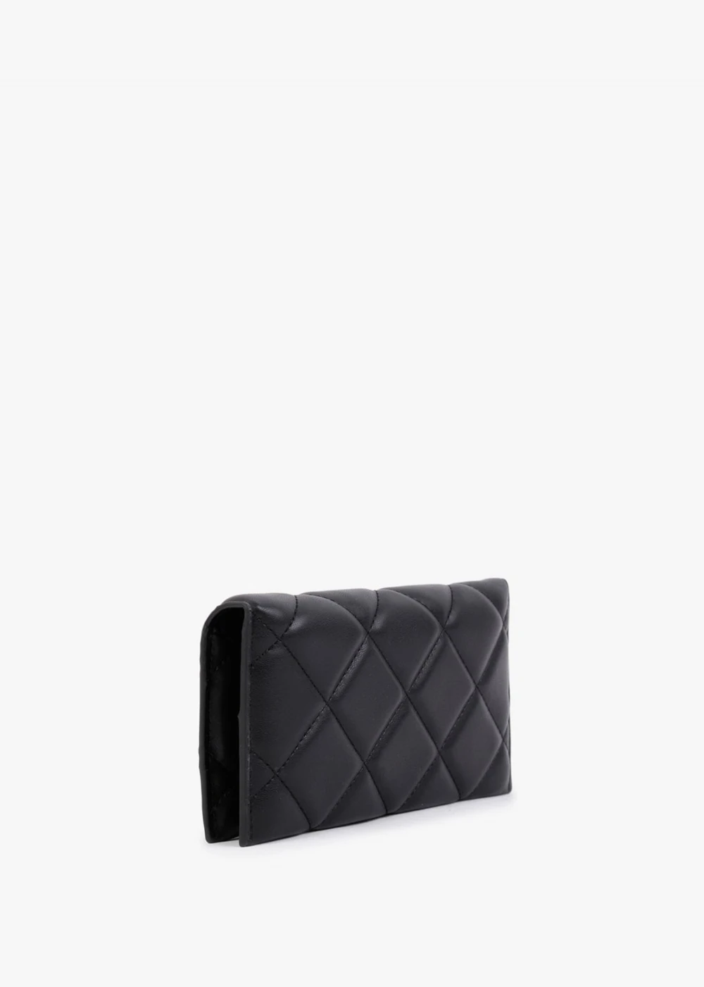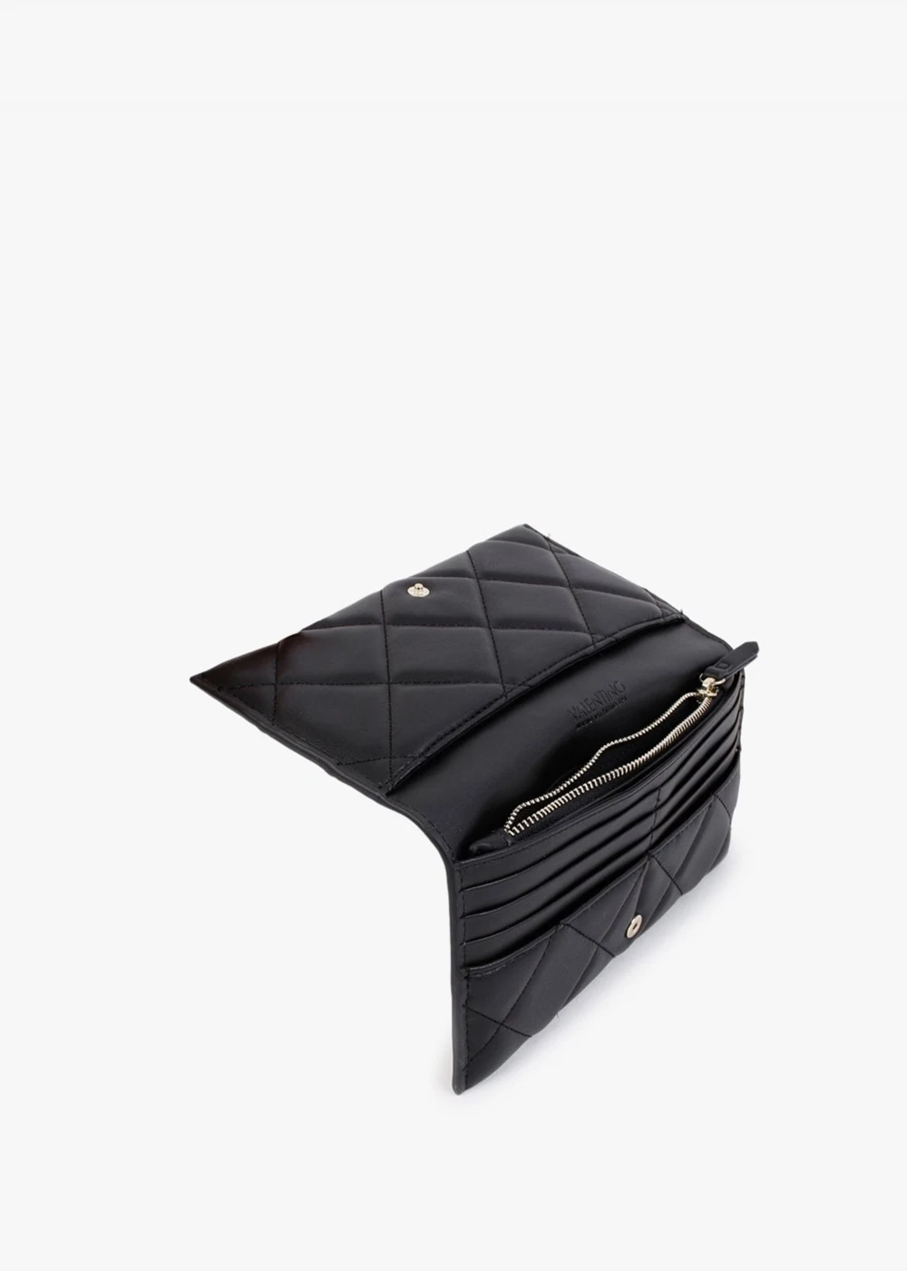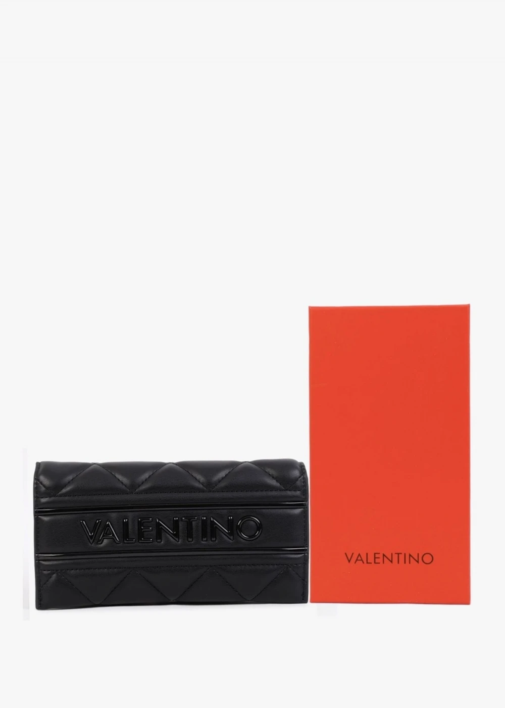 Keep all your coins, notes and cards in check this New Season with this everyday accessory from Valentino Bags. The ‘Ada’ wallet is crafted from premium PU in a classic quilted design with gold tone hardware. The secure popper fastening front flap reveals multiple handy compartments. Signature Valentino Bag branding is seen throughout.