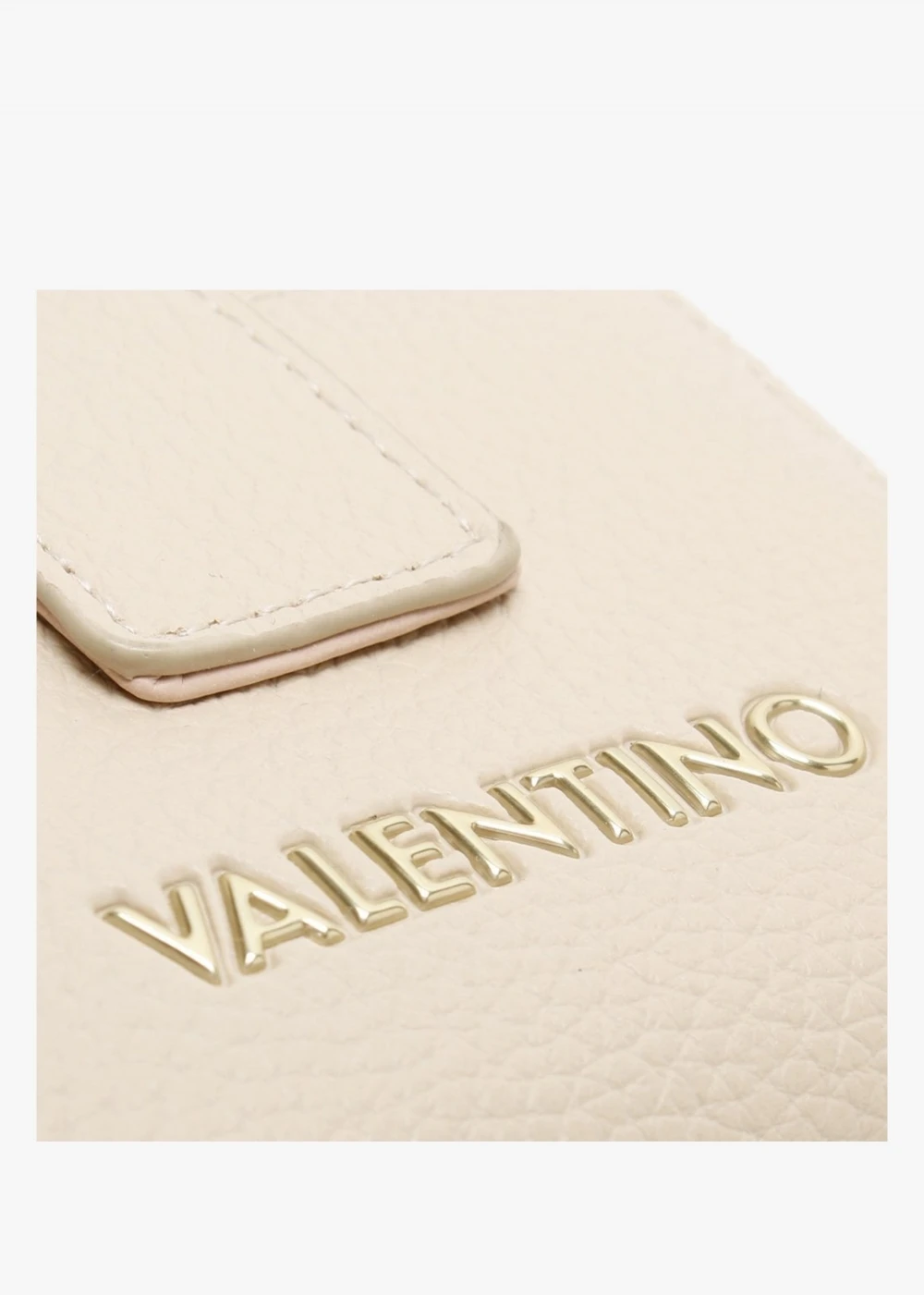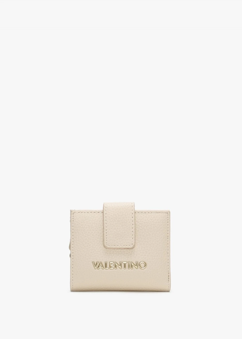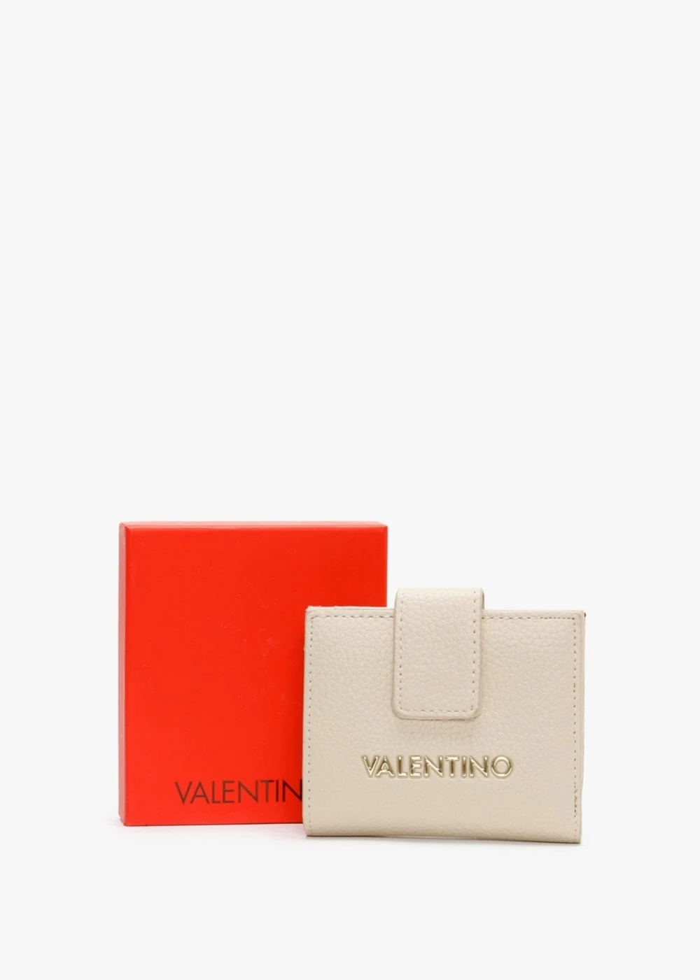 Keep all your coins notes and cards in check this New Season with the ‘Zip Around’ wallet from Valentino Bags. This classic everyday style is crafted from premium pebbled PU with gold tone accents. The secure popper fastening strap reveals a zip fastening coin compartment, multiple card slots as well as a compartment for all your notes. Bold logo adds detail to the front of the purse. Signature Valentino Bag branding is seen throughout.