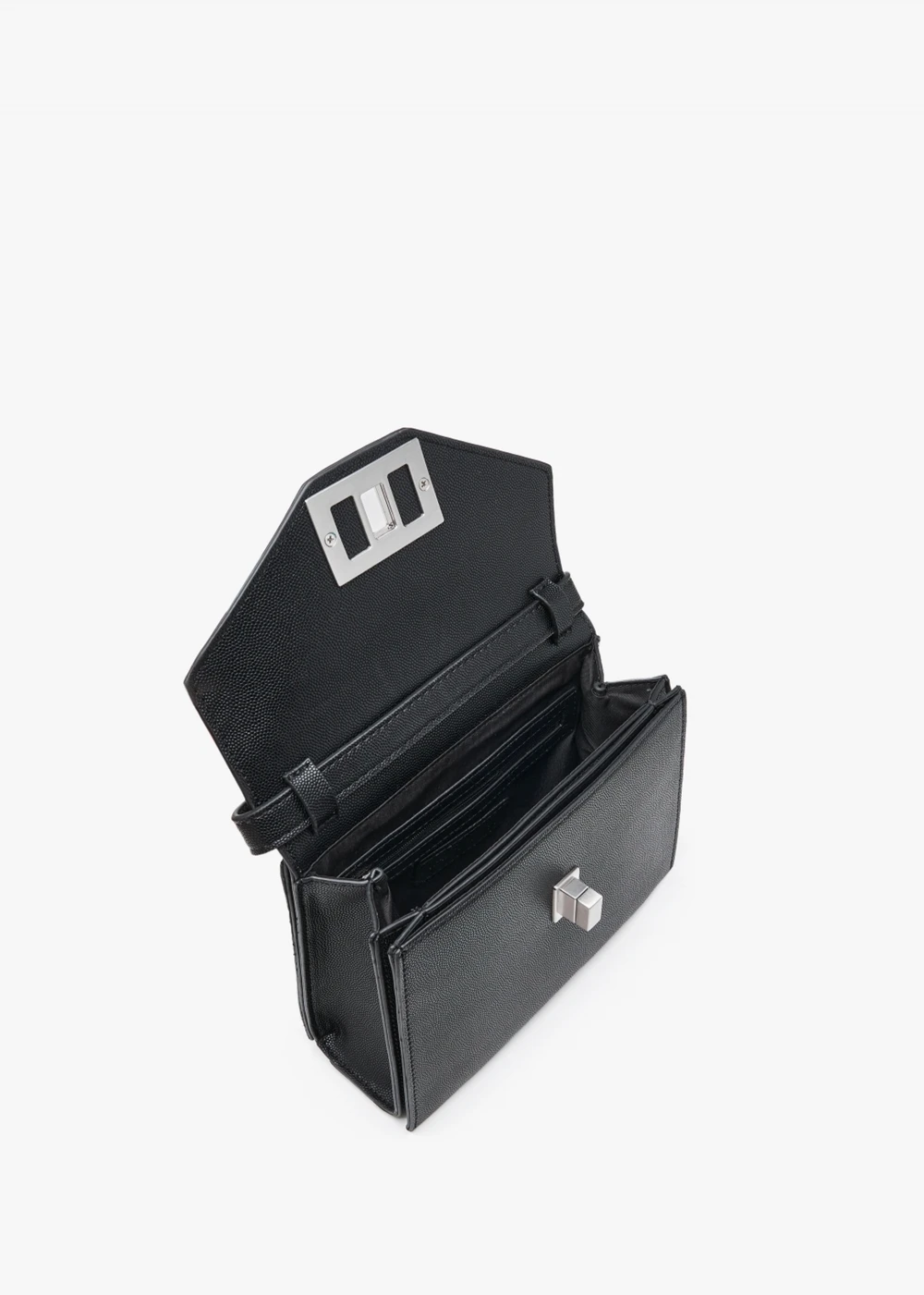Add the ‘Alicia’ cross-body bag from Valentino Bags to your handbag collection. This New Season style is crafted from a premium textured PU with silver tone hardware. The secure twist lock front flap reveals the main compartment with handy inner zip and slot pockets, exterior zip pocket also features. Carry by the removal strap. Signature Valentino Bags branding is seen throughout.