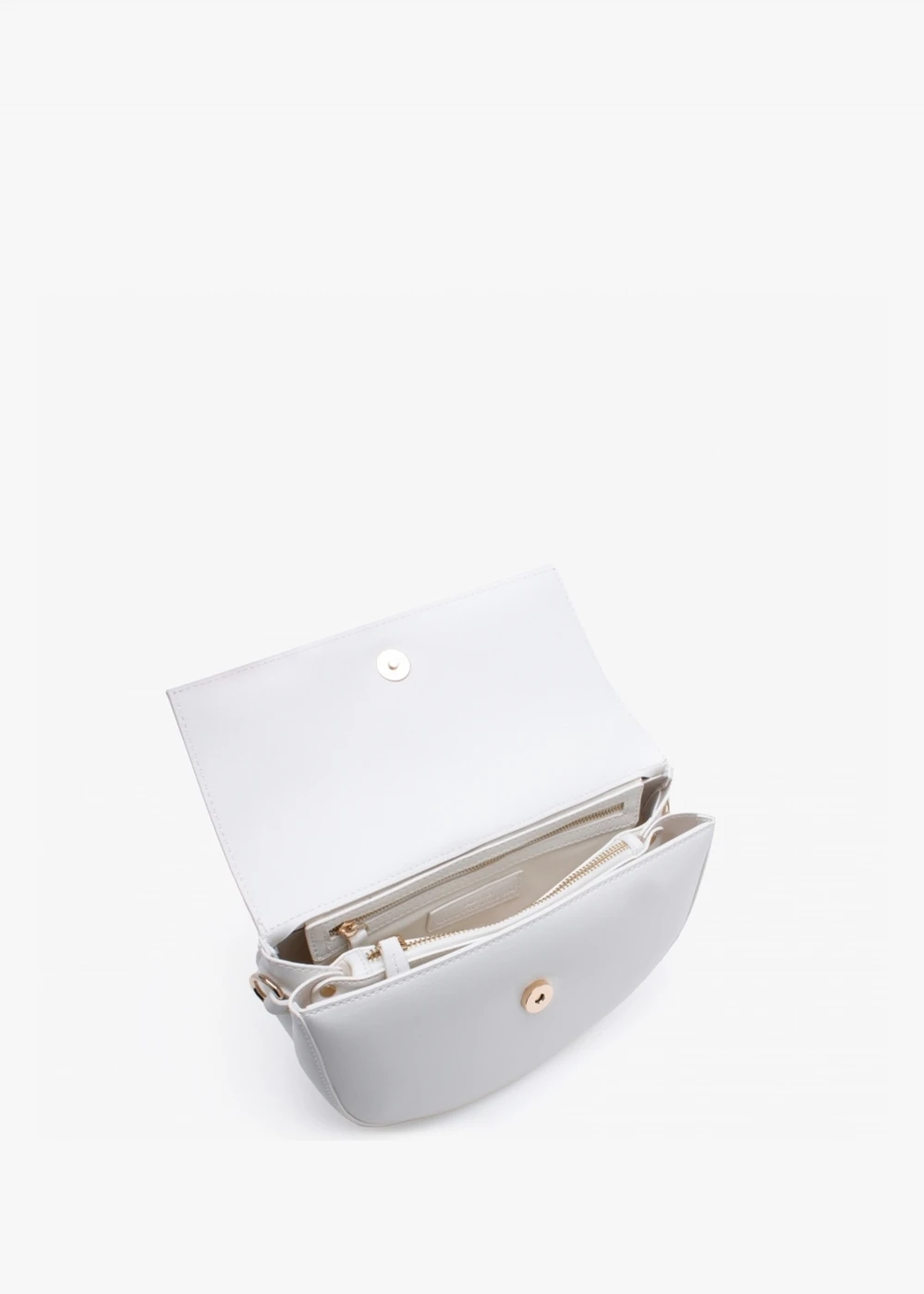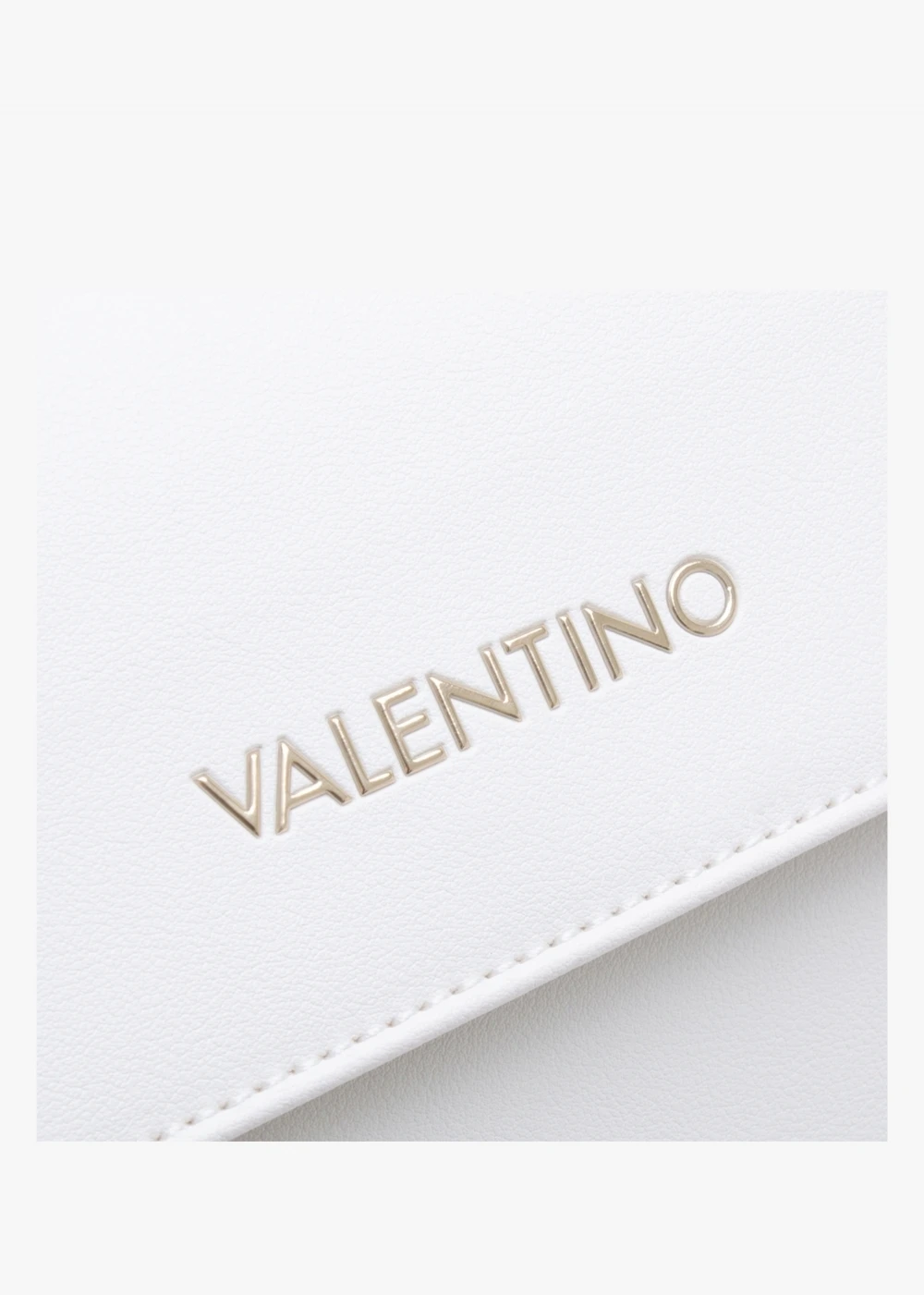 The ‘Bigs’ satchel from Valentino Bags is the perfect day bag style. Crafted from premium smooth PU with gold tone accents. The secure magnetic snap front flap reveals multiple handy compartments. Carry by the detachable logo adorned guitar strap on the shoulder or across the body. Signature Valentino Bags branding is seen throughout.