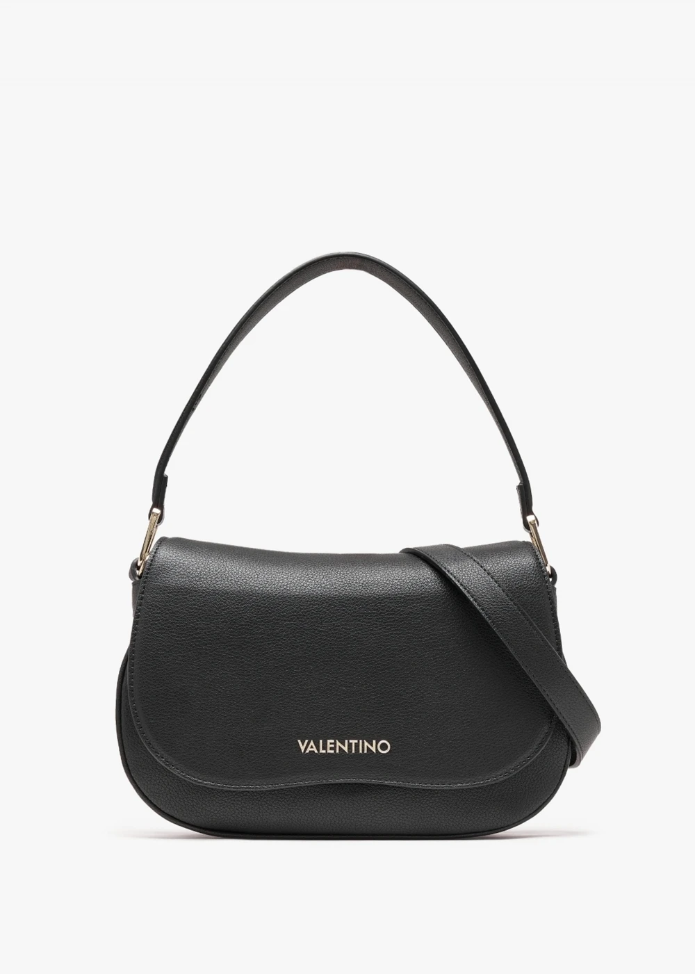 Add the spacious ‘Cortina’ shoulder bag from Valentino eco-friendly collection to your handbag collection. This New Season everyday style is crafted from premium pebbled PU with polished gold tone hardware. The secure magnetic snap fastening reveals the top zip fastening main compartment featuring handy inner zip and slot pockets. Carry by the top handle shoulder strap or the detachable straps. Signature Valentino branding is seen throughout.