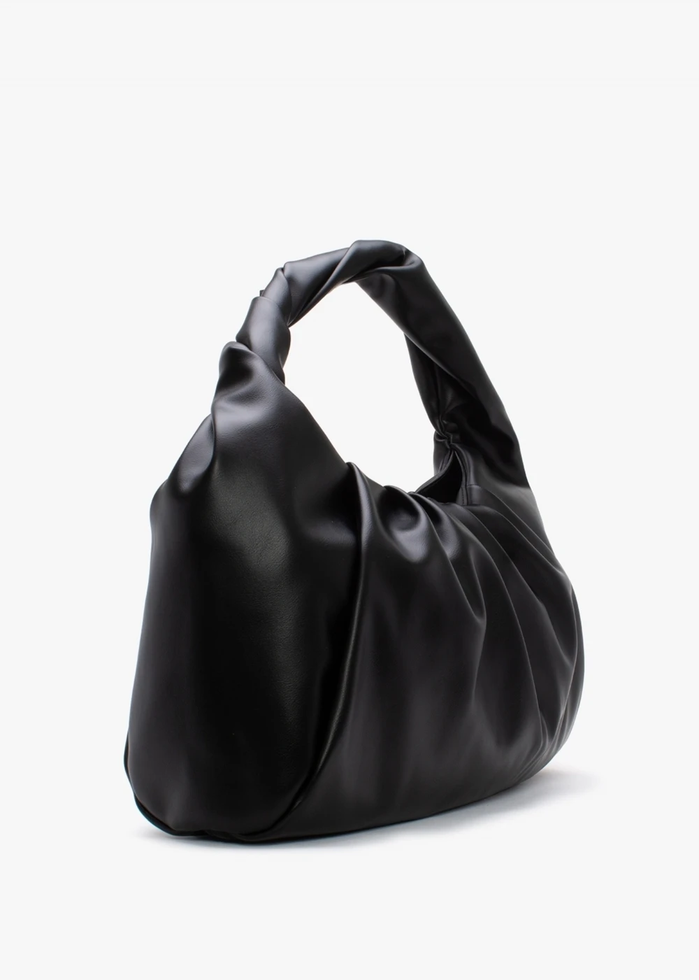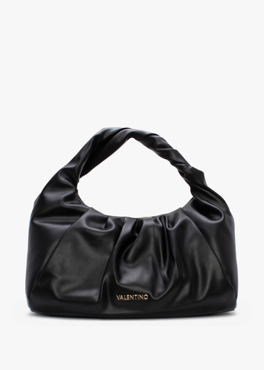Add the large ‘Lake’ hobo bag from Valentino eco-friendly collection to your handbag collection. This New Season everyday style is crafted from premium super soft PU with gold tone hardware. The secure top zip fastening reveals the spacious main compartment with handy inner zip and slot pockets. Cary by the twisted shoulder strap. Pleating adds detail. Signature Valentino branding is seen throughout.