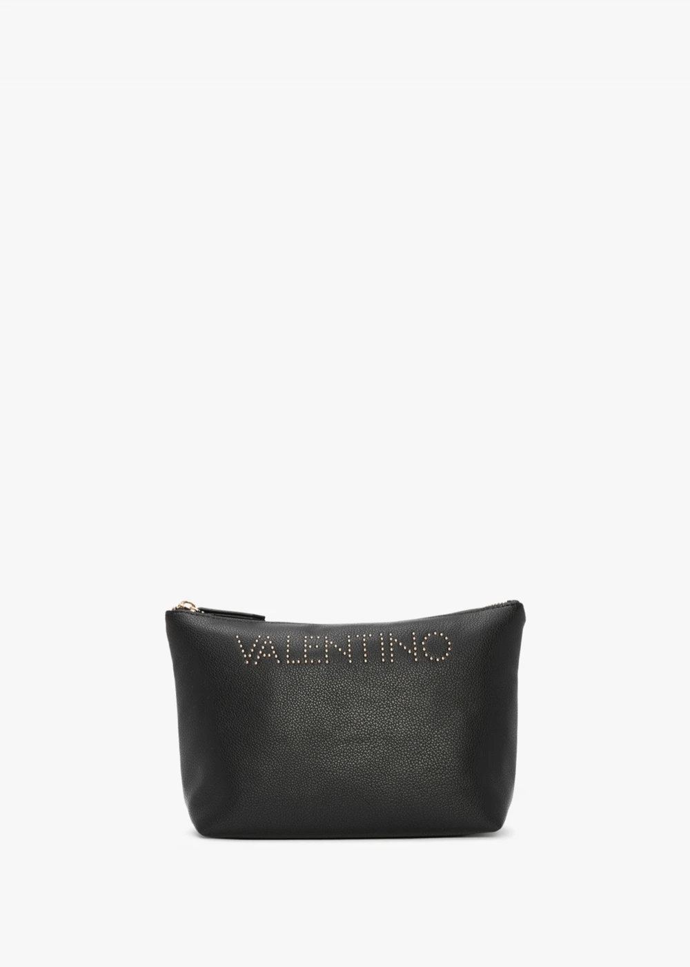 The large ‘Pie Soft’ cosmetic pouch is part of the New Season collection from Valentino Bags. This handy accessory is crafted from premium textured leather with gold tone hardware. The secure top zip fastening reveals the roomy main compartment featuring handy inner zip and slot pockets. Studded embellishment adds detail. Signature Valentino Bags branding is seen throughout.