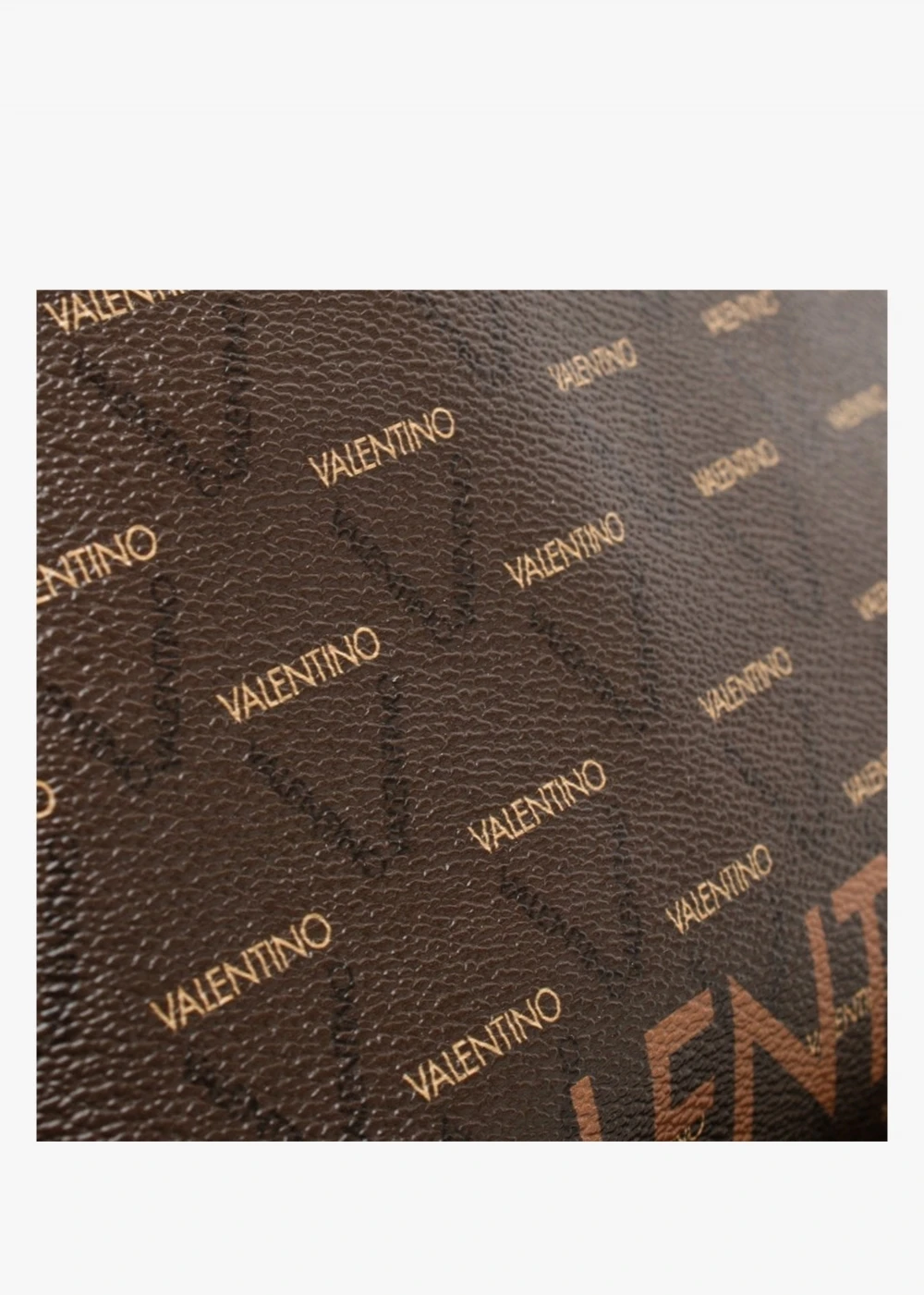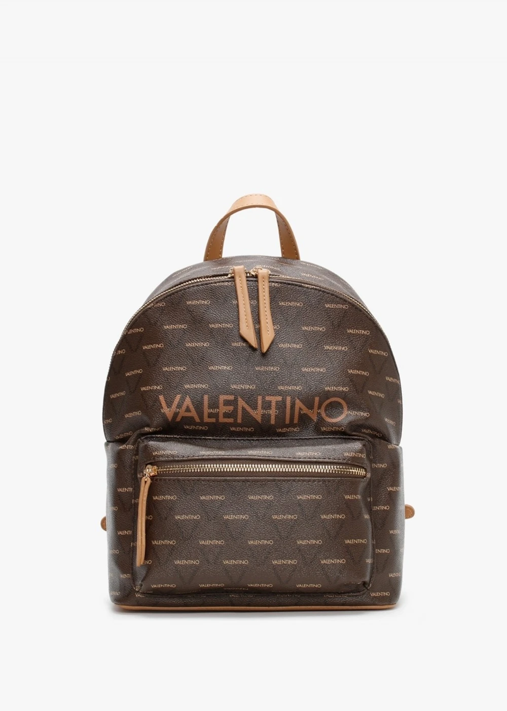 Go hands free this New Season with the ‘Liuto’ backpack from Valentino Bags. This off-duty style is crafted from premium textured PU in a repeat logo design with polished gold tone accents. The secure zip around fastening reveals the spacious main compartment featuring handy inner pocket, exterior pocket also features. Carry by the top handle or go hands free with the adjustable shoulder straps. Signature Valentino Bags branding is seen throughout.