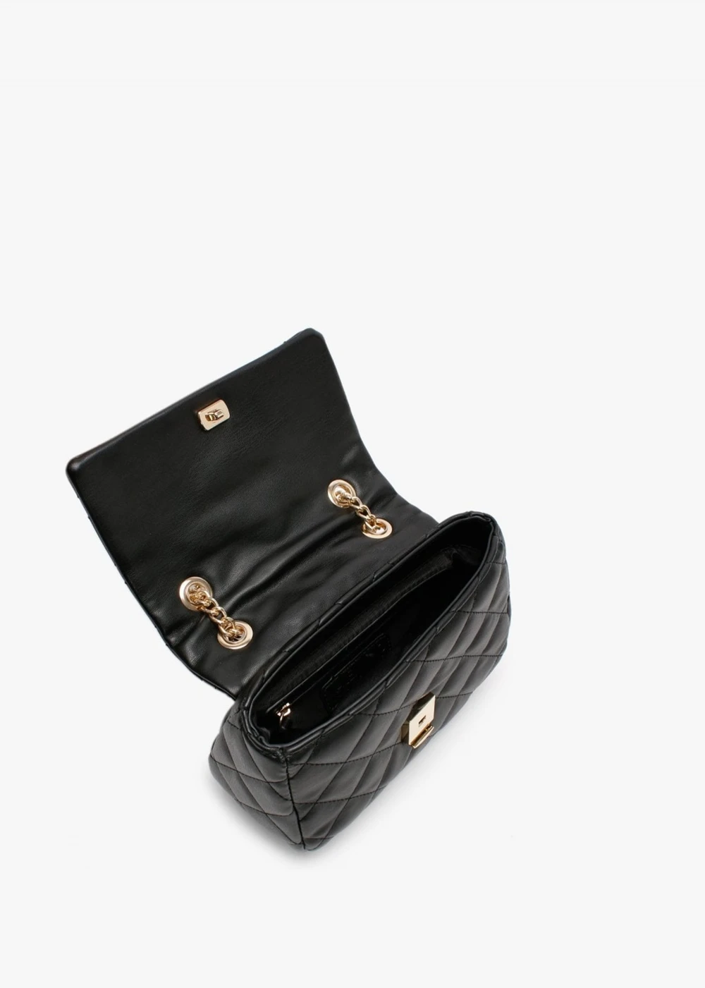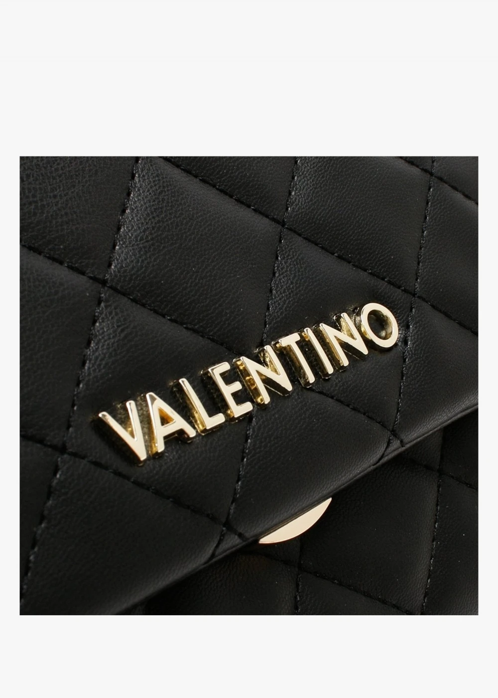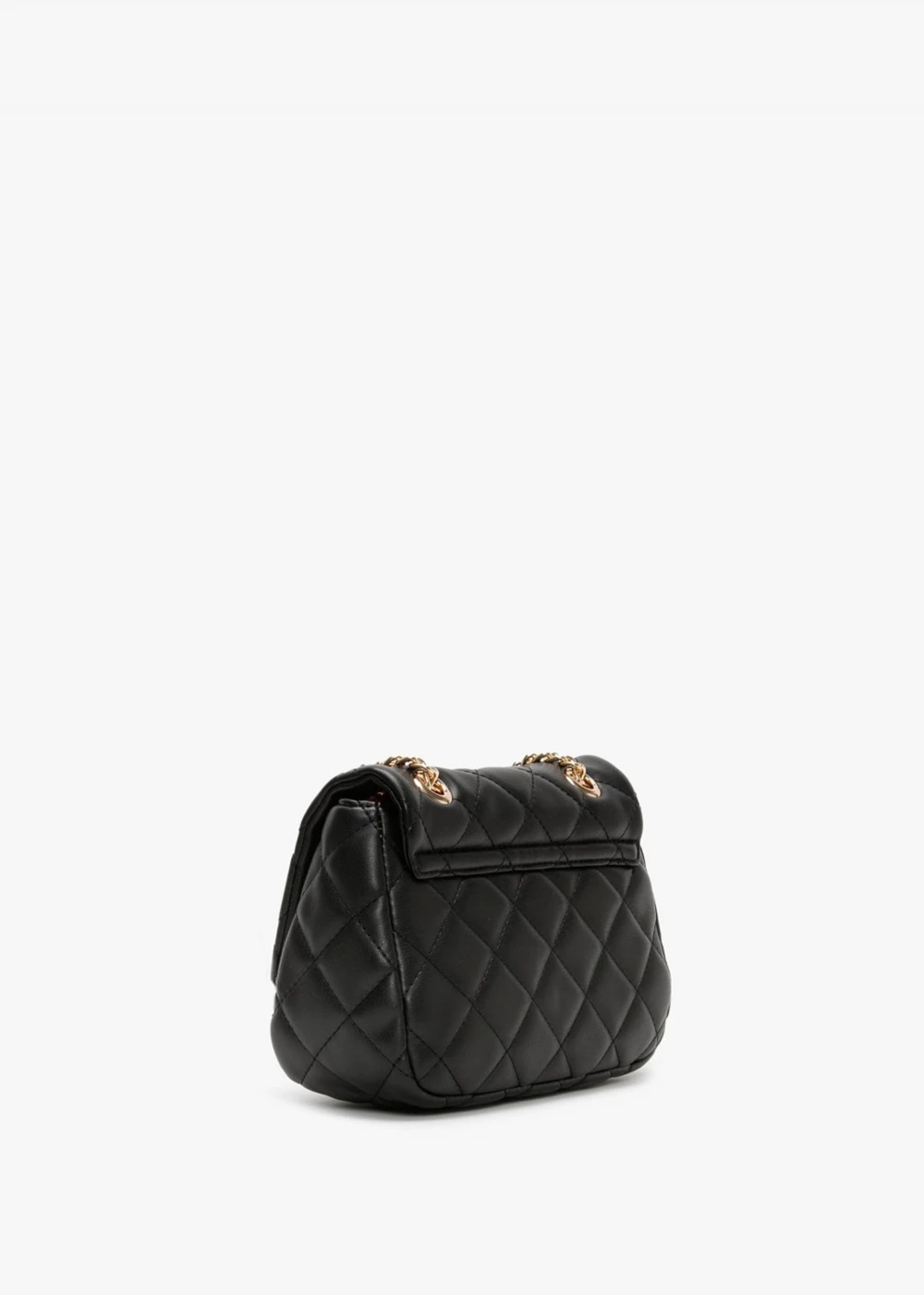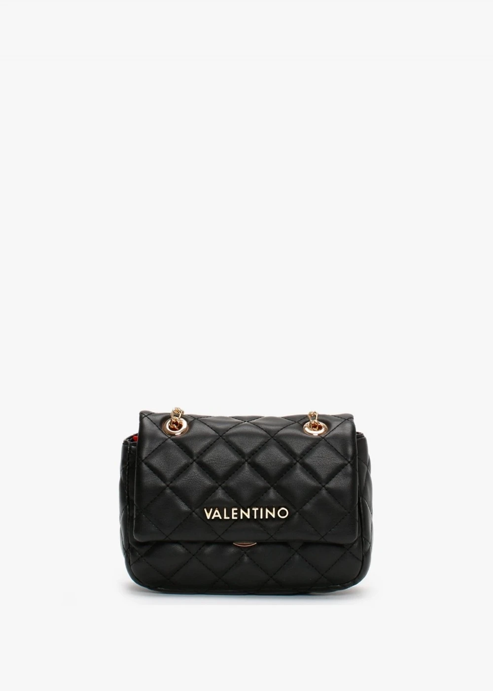 The ‘Ocarina’ cross-body bag is part of the New Season collection of designer handbags from Valentino Bags. This compact style is crafted from premium PU in a classic quilted design with polished gold tone accents. The secure push lock front flap reveals the main compartment and features handy inner pockets. Carry by the adjustable strap on the shoulder or across the body. Signature Valentino Bags branding is seen throuhgout.
