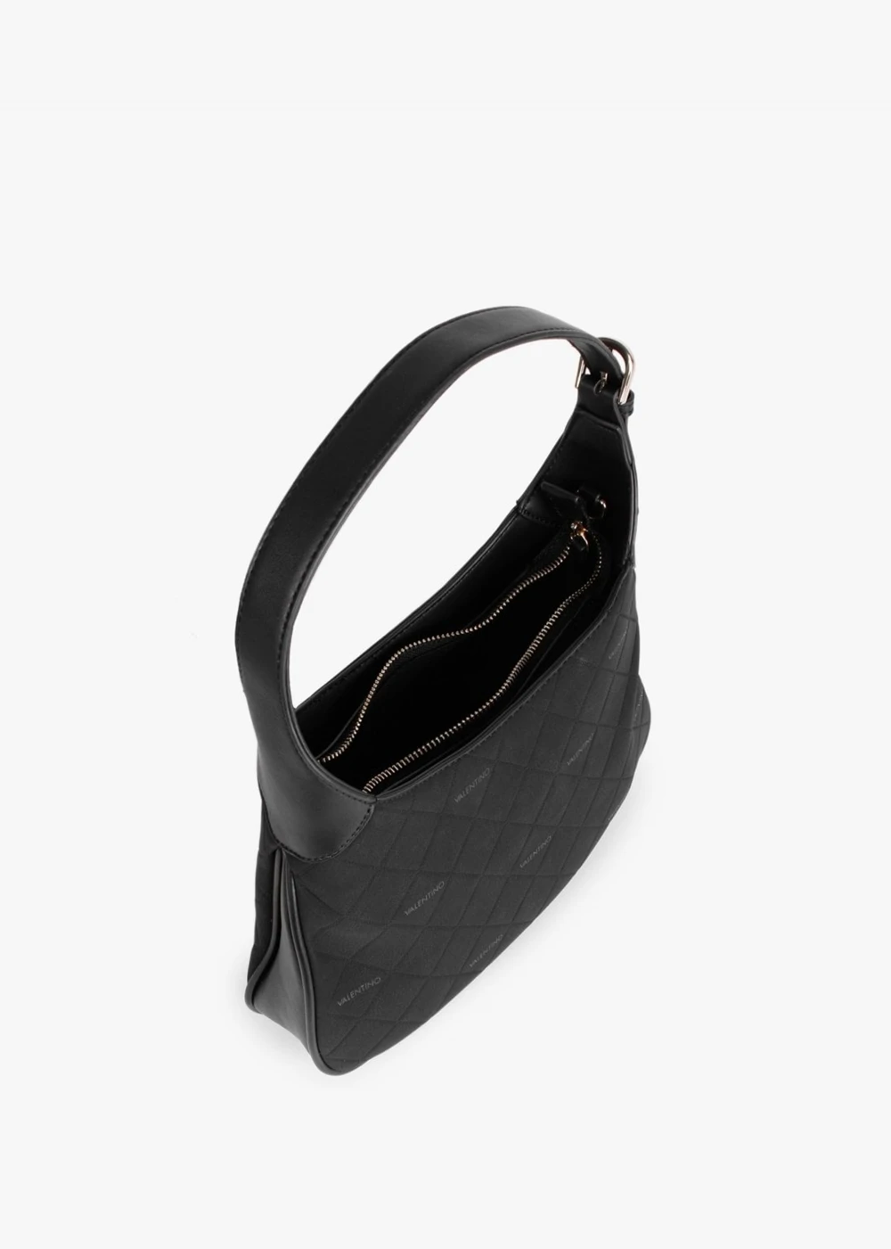 Add the ‘Paella’ hobo bag from Valentino Bags to your bag collection. This New Season style is crafted from premium PU with gold tone hardware. The secure top zip fastening reveals the main compartment and further handy inner pockets. Carry by the detachable strap or the structured top handle. Logo design adds detail to the front and back of the bag. Signature Valentino Bags branding is seen throughout.