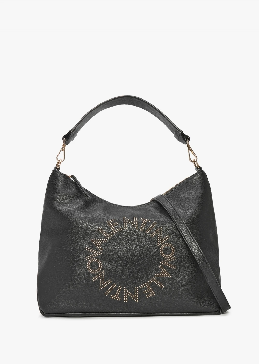 Add the spacious ‘Pie’ hobo bag from Valentino Bags relove recycle collectionto your New Seaon wardrobe. This classic everyday style is crafted from premium PU in a textured design with polished gold tone accents. The secure top zip fastening reveals the main compartment and features handy inner zip and slot pockets. Carry by either of the detachable straps. Embellished studded logo adds detail. Signature Valentino Bags branding is seen throughout.