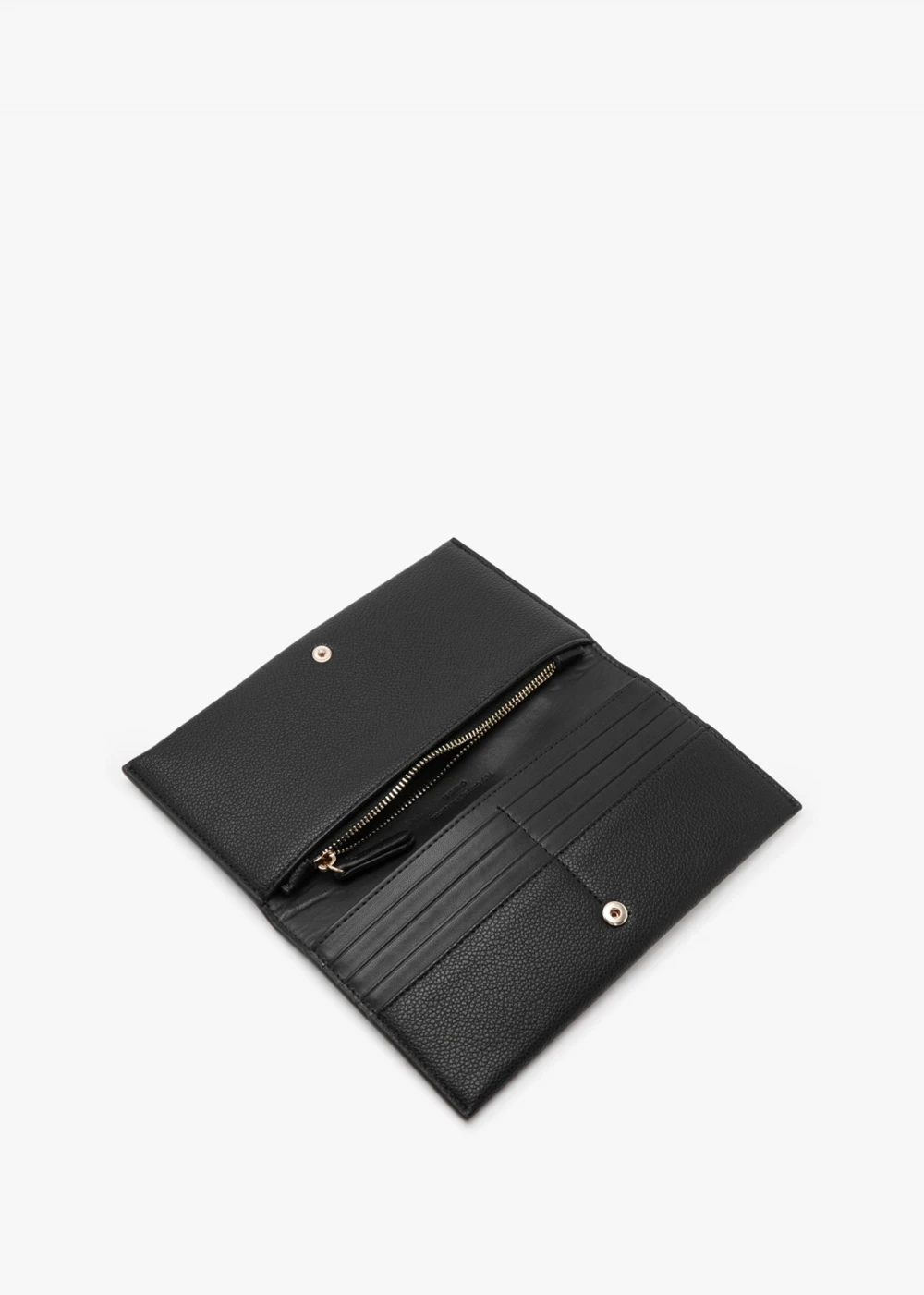 Keep all your cards notes and cards in check this New Season with the ‘Pie’ wallet from Valentino Bags. This spacious everyday style is part of the eco-friendly collection and crafted from premium textured PU with gold tone hardware. The secure popper fastening front flap reveals multiple handy inner compartments. Embellished studded logo adds detail. Signature Valentino Bags branding is seen throughout.