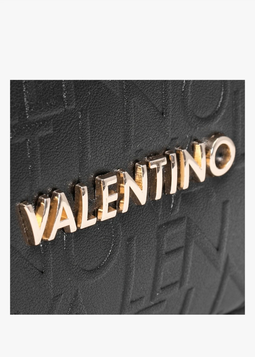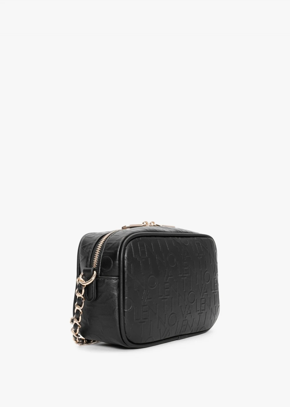 The ‘Relax’ camera bag is part of the New Season collection from Valentino Bags. Crafted from premium PU in a repeat embossed logo design with polished gold tone hardware. The secure top zip fastening reveals the main compartment plus inner zip and slot pocket. Carry by the chain strap on the shoulder or across the body. Signature Valentino Bags branding is seen throughout.