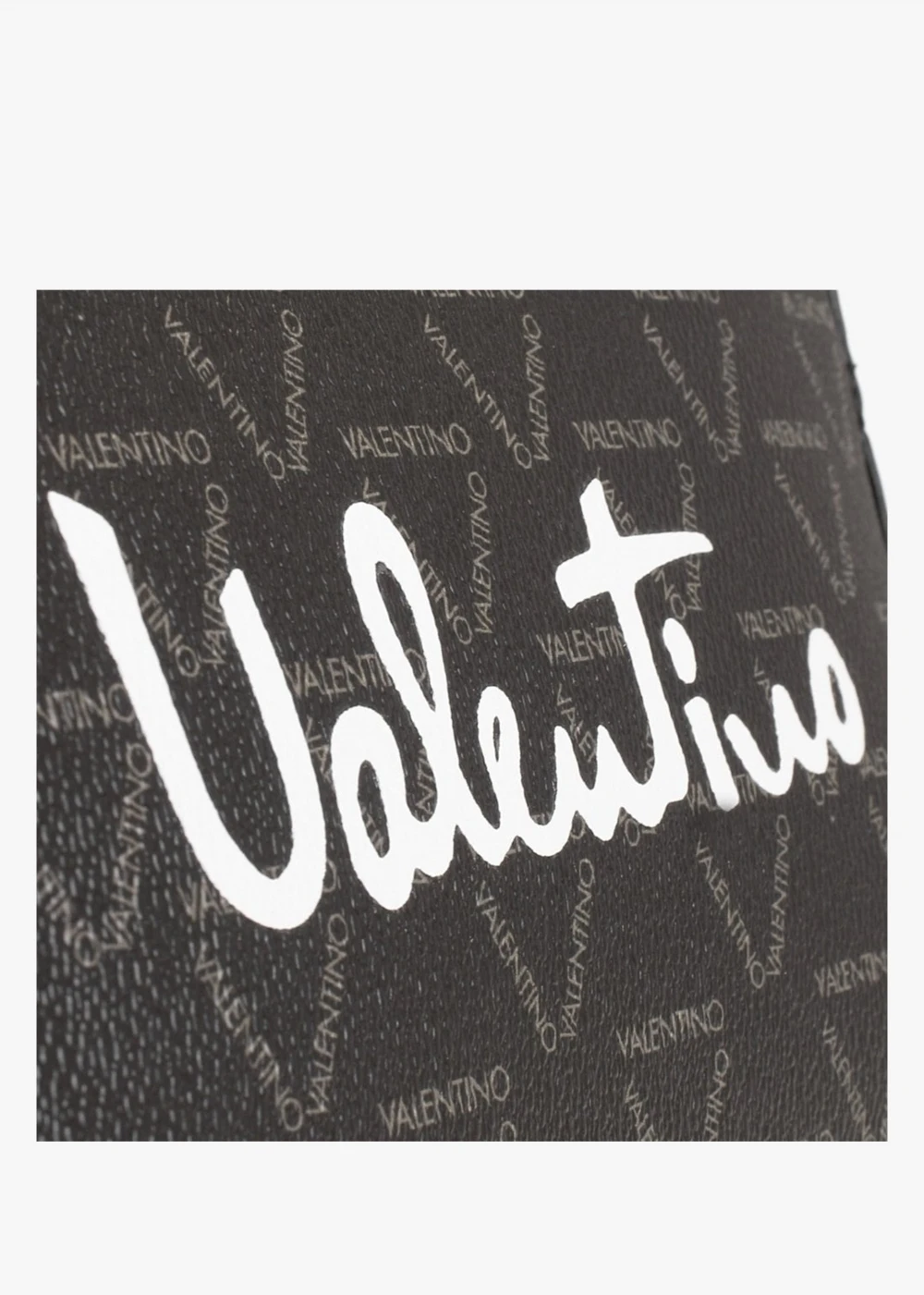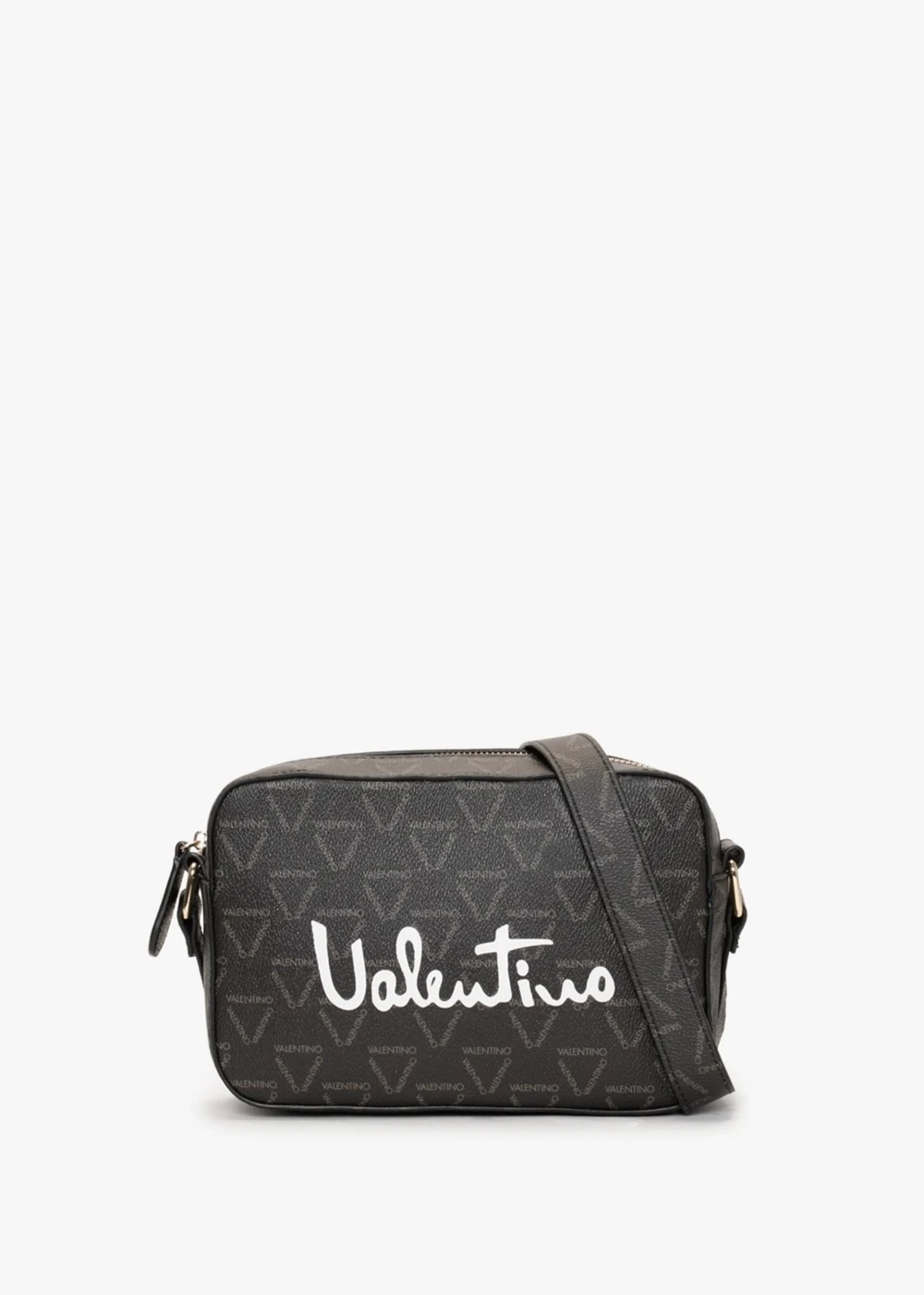 The ‘Shore’ cross-body bag is part of the New Season collection from Valentino Bags. This everyday style is crafted from premium textured PU in a repeat logo design with polished gold tone hardware. The secure top zip fastening reveals the main compartment with handy inner pockets. Carry by the adjustable strap on the shoulder or across the body. Script style logo adds detail to the front of the bag, signature Valentino Bags branding is seen throughout.