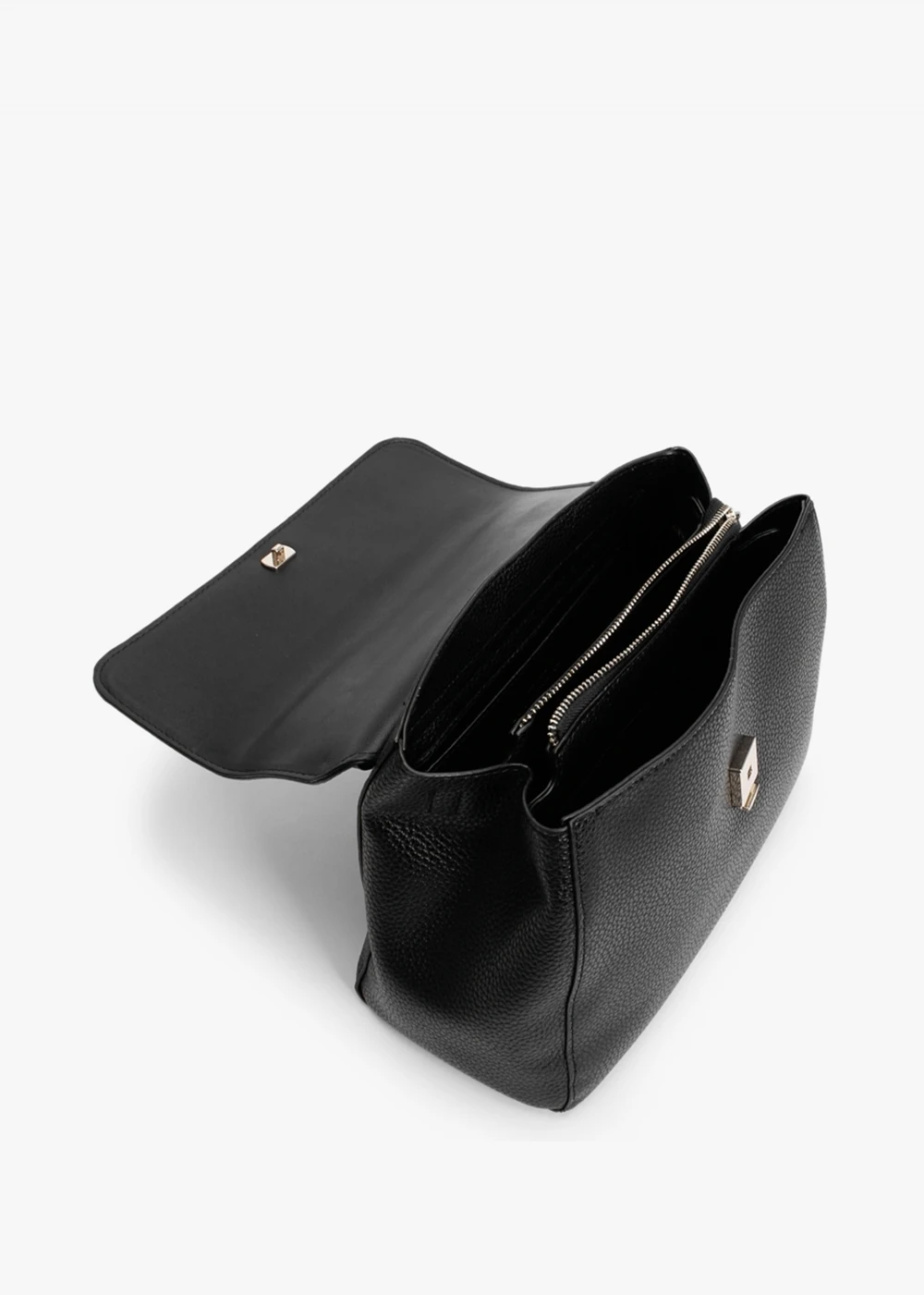 The ‘Superman’ satchel bag is part of the New Season collection from Valentino Bags. This everyday style is crafted from premium PU in a classic pebbled design with polished gold tone hardware. The secure push lock front flap reveals multiple compartments. Carry by the top handle. Signature Valentino Bags branding is seen throughout.