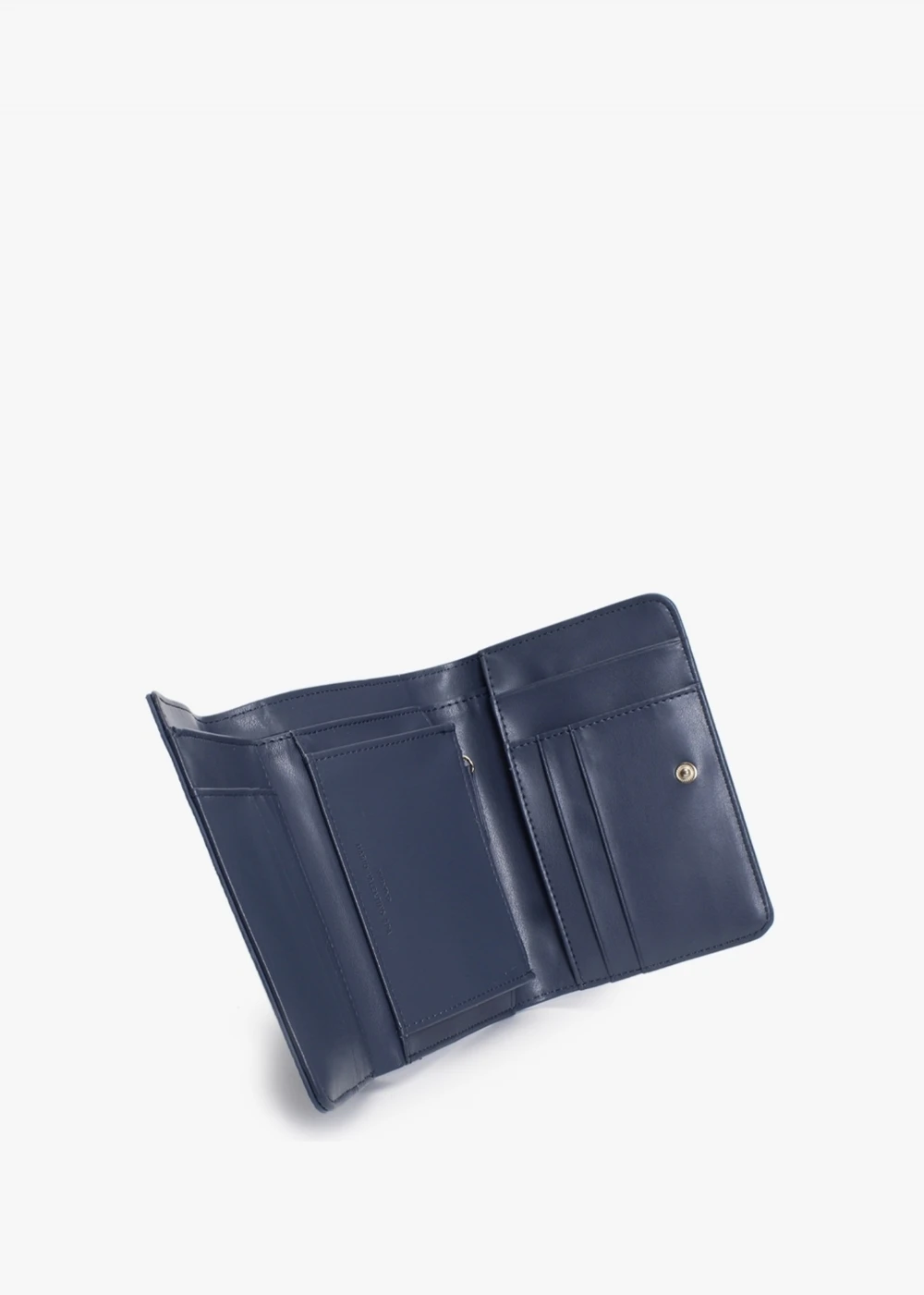 Keep all your coins notes and cards in check this New Season with the timeless ‘Superman Travel’ wallet from Valentino Bags. Crafted from premium pebbled PU with gold tone accents. The secure popper fastening reveals multiple handy inner compartments. Signature Valentino Bags branding is seen throughout.