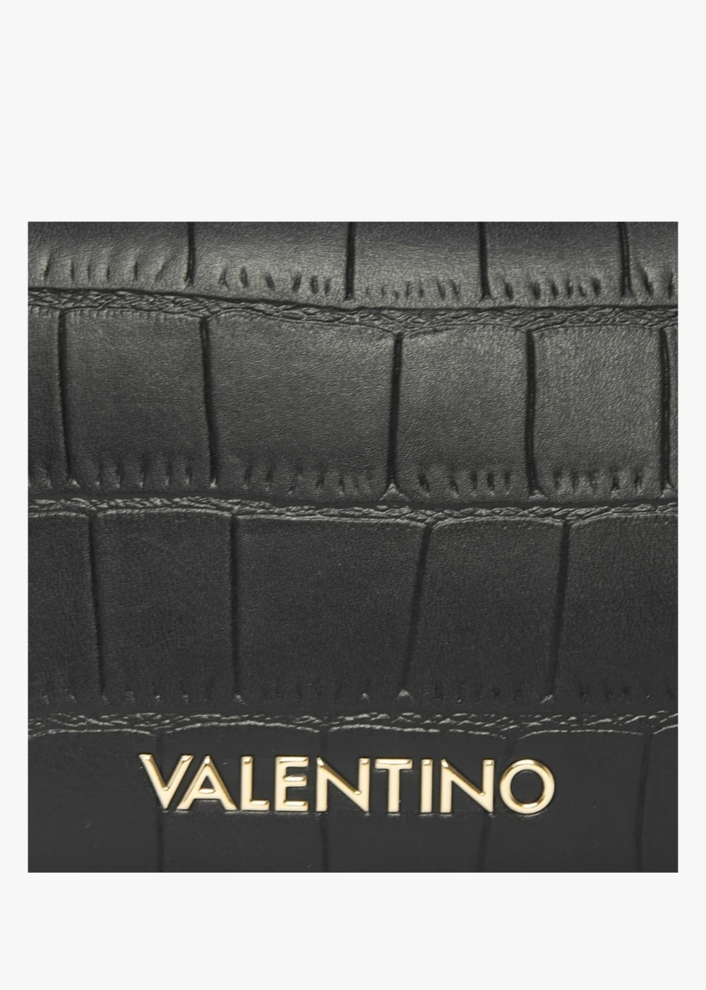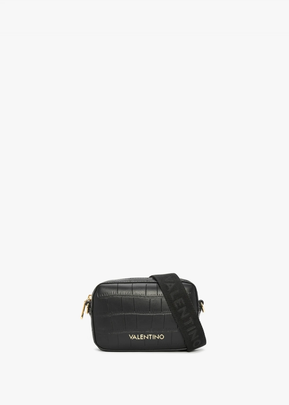 The ‘Windy’ camera bag is part of the New Season collection from Valentino Bags. This classic style is crafted from premium PU in a moc croc designer with gold tone hardware. The secure top zip fastening reveals the main compartment featuring handy inner slot pocket. Carry by the tonal detachable logo strap. Signature Valentino Bags branding is seen throughout.
