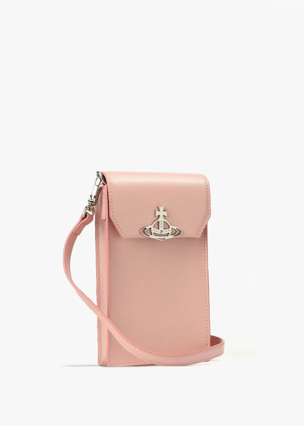 Carry your phone around in style this New Season with this case from Vivienne Westwood. Crafted from a pearlized leather with polished silver tone hardware. The secure magnetic snap fastening reveals the compartment for your phone, exterior card slot pockets also feature. Carry by either of the detachable straps. Iconic ‘Orb’ logo adds detail. Signature Vivienne Westwood branding is seen throughout.