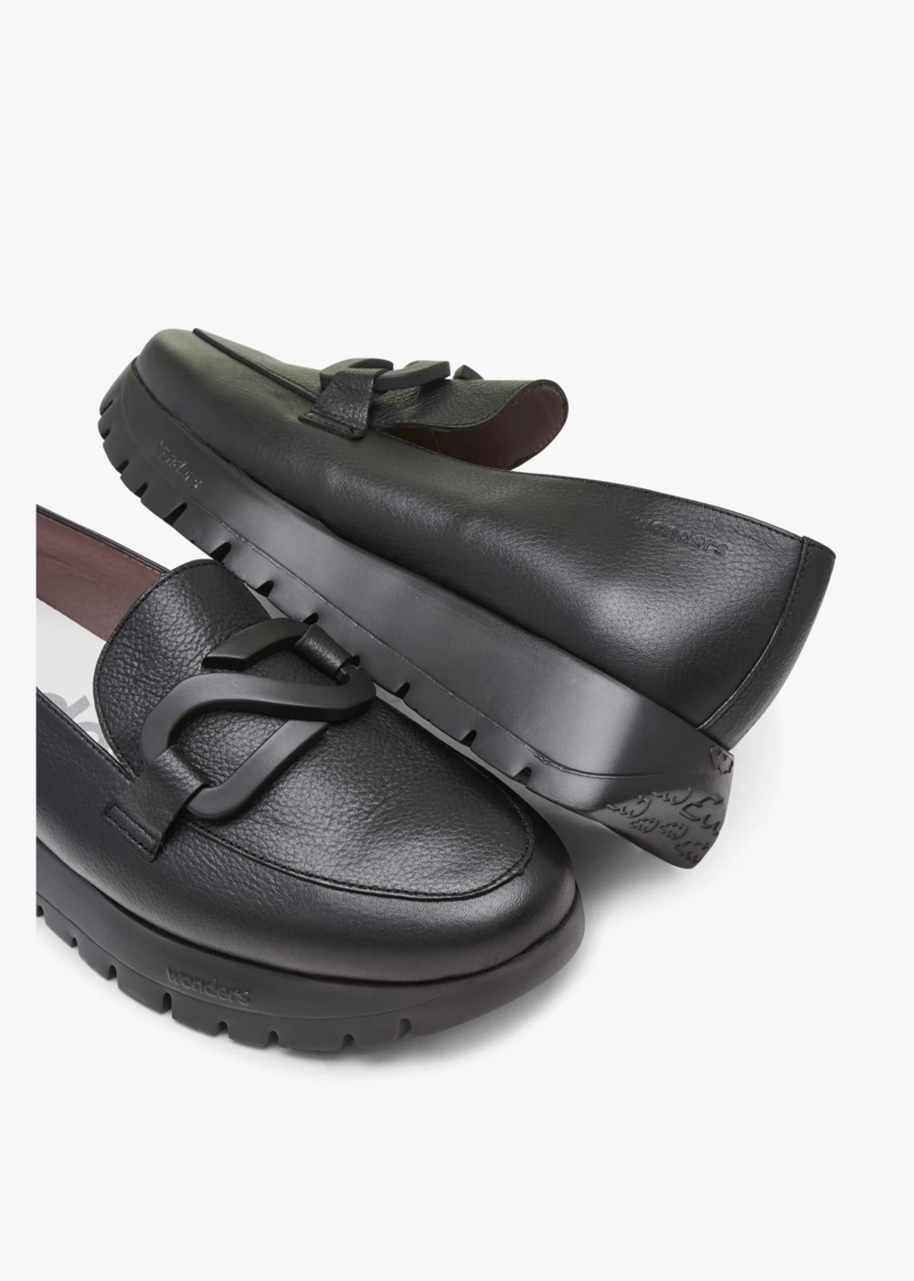 The chunky ‘Wild’ loafers are part of the New Season collection from Wonders. Crafted from a premium leather upper with part leather lining and a light-weight chunky rubber sole. An easy to wear slip on style featuring decorative motif hardware detail to the upper. Signature Wonders branding is seen to the foot-bed and sole as well as the topline.